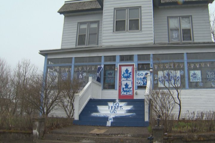 After winning in the first round for the first time since 2004, a pair of Toronto Maple Leafs fans painted their entire staircase blue and white